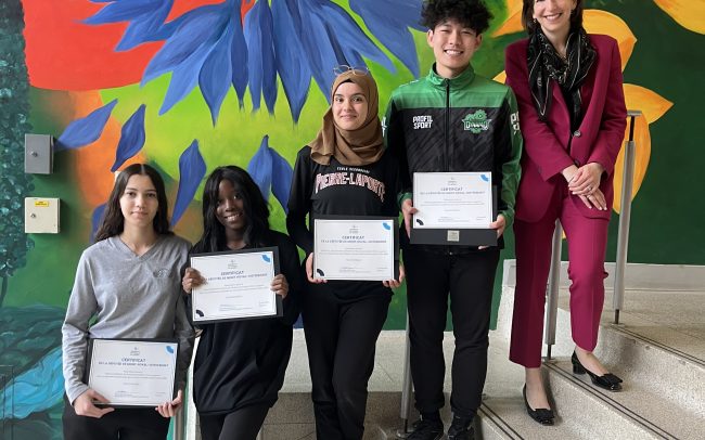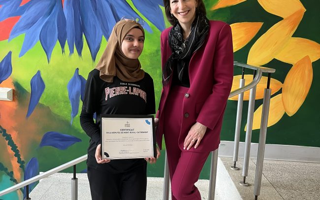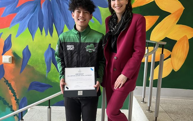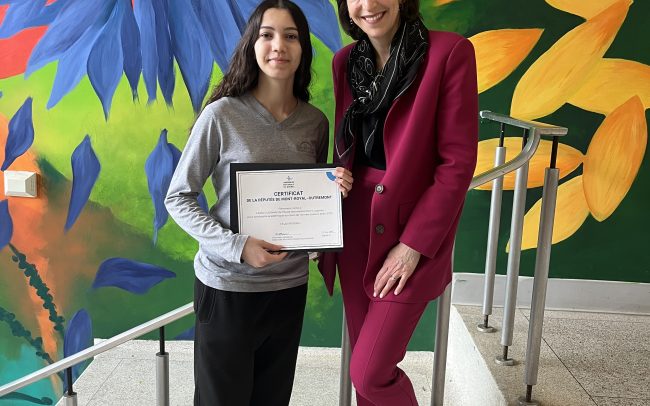 Nous sommes fiers d’annoncer que cinq élèves exceptionnels de notre école ont été récemment récompensés pour leurs réalisations remarquables au cours de l’année scolaire. Ces prix leur ont été remis par Michelle Setlakwe, députée de Mont-Royal–Outremont, dans le cadre de son initiative visant à souligner l’excellence jeunesse dans notre communauté.