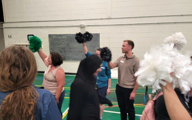 Grâce à la fondation Lionel-Groulx, deux enseignantes de l’école secondaire Pierre-Laporte ont eu la chance d’accueillir Biz et Claudia Larochelle en classe pour présenter le livre Nos géants : Une Histoire de fierté. Ce fut une belle occasion pour les élèves de découvrir des personnages phares de notre culture et de faire des liens avec leur cours d’histoire.